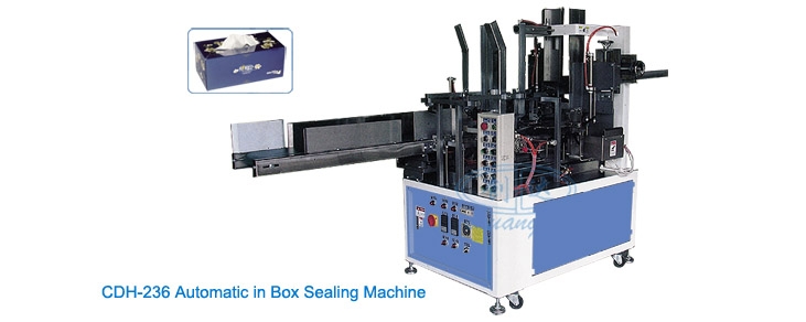 Оборудование для упаковки косметических салфеток в коробки CDH-236 представляет собой вспомогательное устройство при общем производстве бумажных косметических салфеток. При этом оно полностью отвечает требованиям стандарта CE.